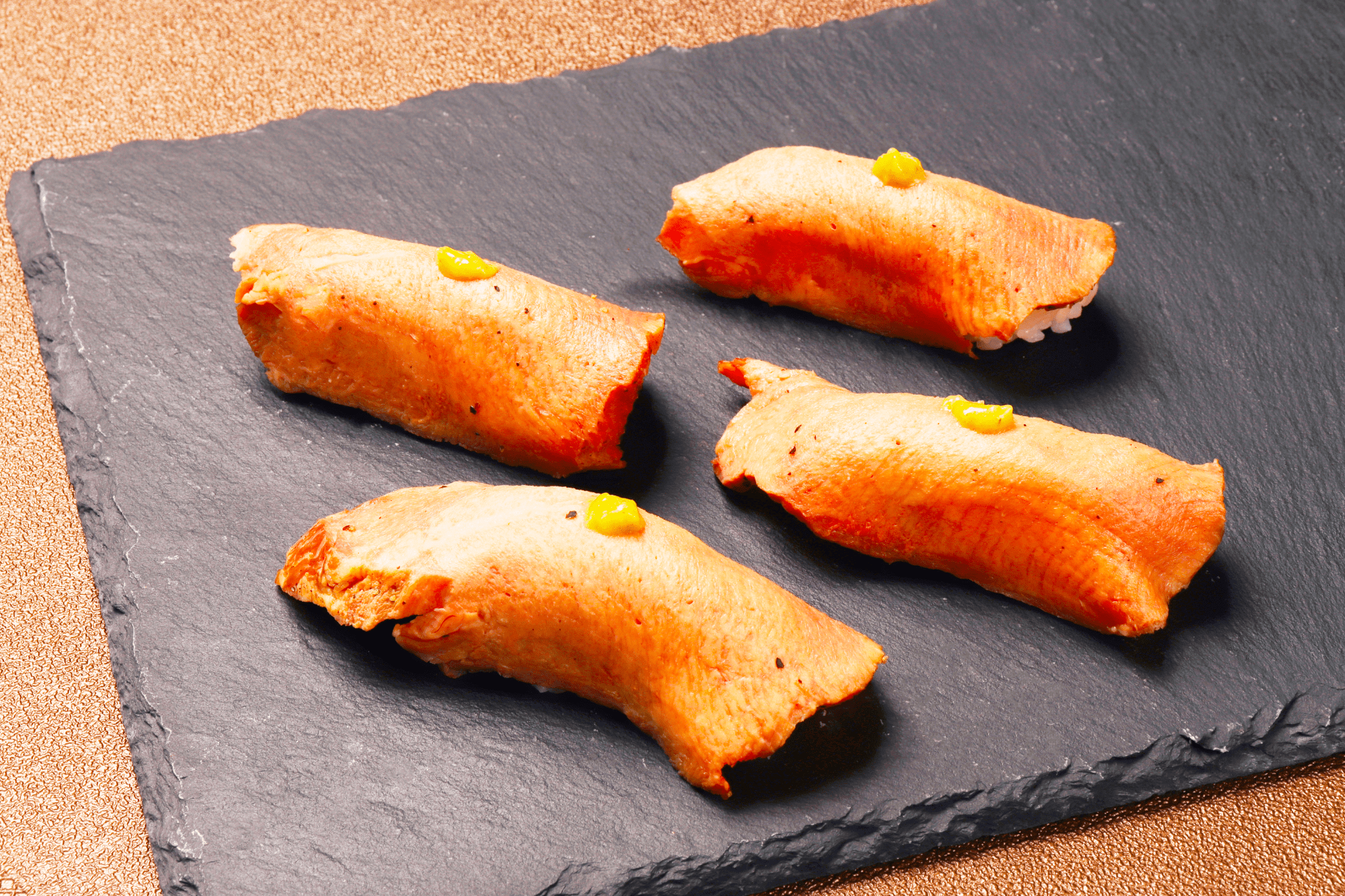 薄切りにした牛タンにわさびと玉ねぎのソースをかけ、香り豊かな味わいと滑らかな舌触りが特徴です。