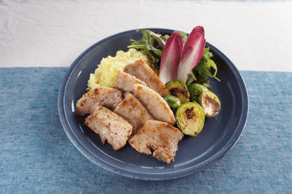優しい塩味が豚バラ肉の甘味、旨味を引き立てます。ご飯にたっぷりのせて温泉卵をからめるとたまらない美味しさです。