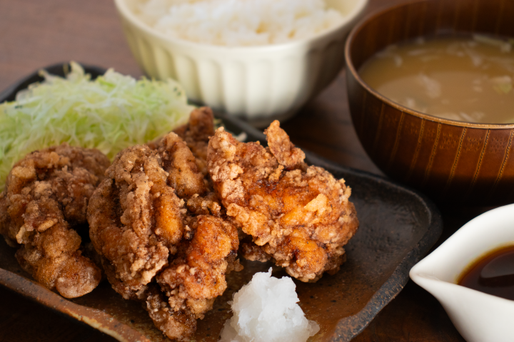 ・唐揚げ定食:大根おろしを添えてさっぱりと。