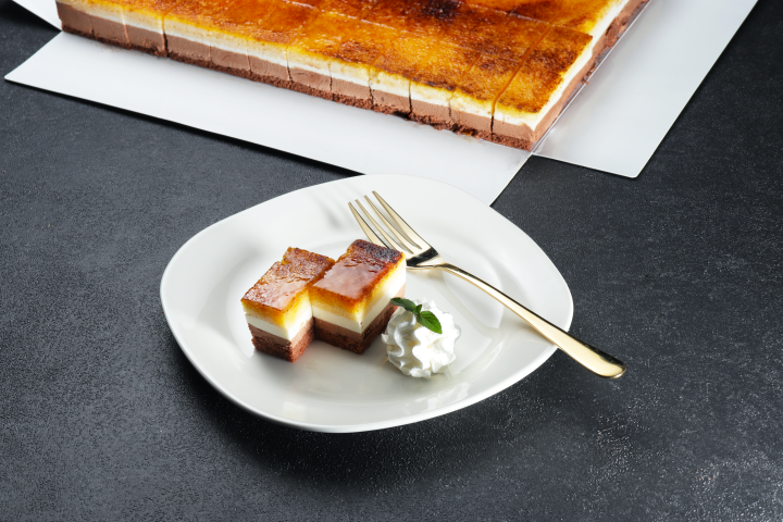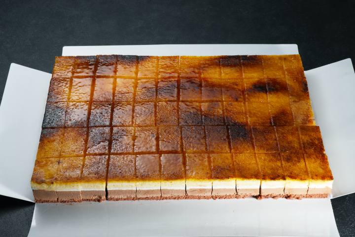 オレンジ風味のチョコレートとバニラのクリームに表面をこんがりキャラメリーゼしたフランスの代表的なケーキです。