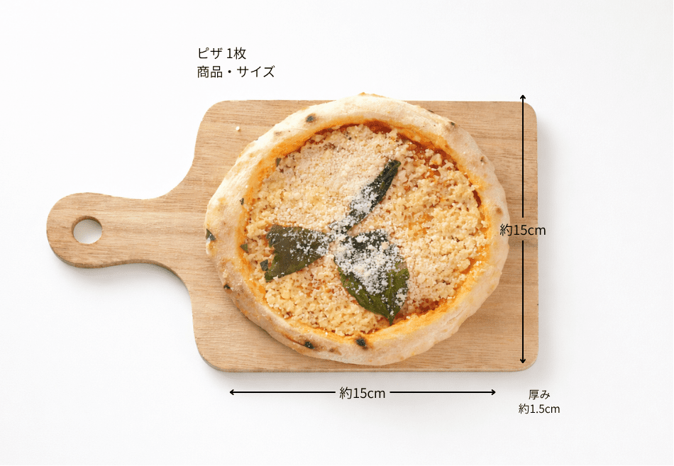 直径約15cmのコンパクトなサイズ感で、ミニピザとして扱いやすく、軽食やサイドメニューとして展開しやすい仕様です。使い勝手がよく、さまざまな業態で取り入れやすい一品です。